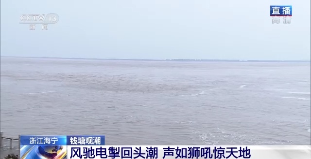总台记者 李欣蔓:此时,钱江潮大部队已经离开老盐仓,继续逆流而上,向杭州的方向挺进。回头潮虽然没有跟上脚步,但它也在倔强地向来时的方向奔涌。大自然的美让人震撼,也让人敬畏,明天就是八月十八大潮日,特别提醒各位,潮水好看,但安全第一。