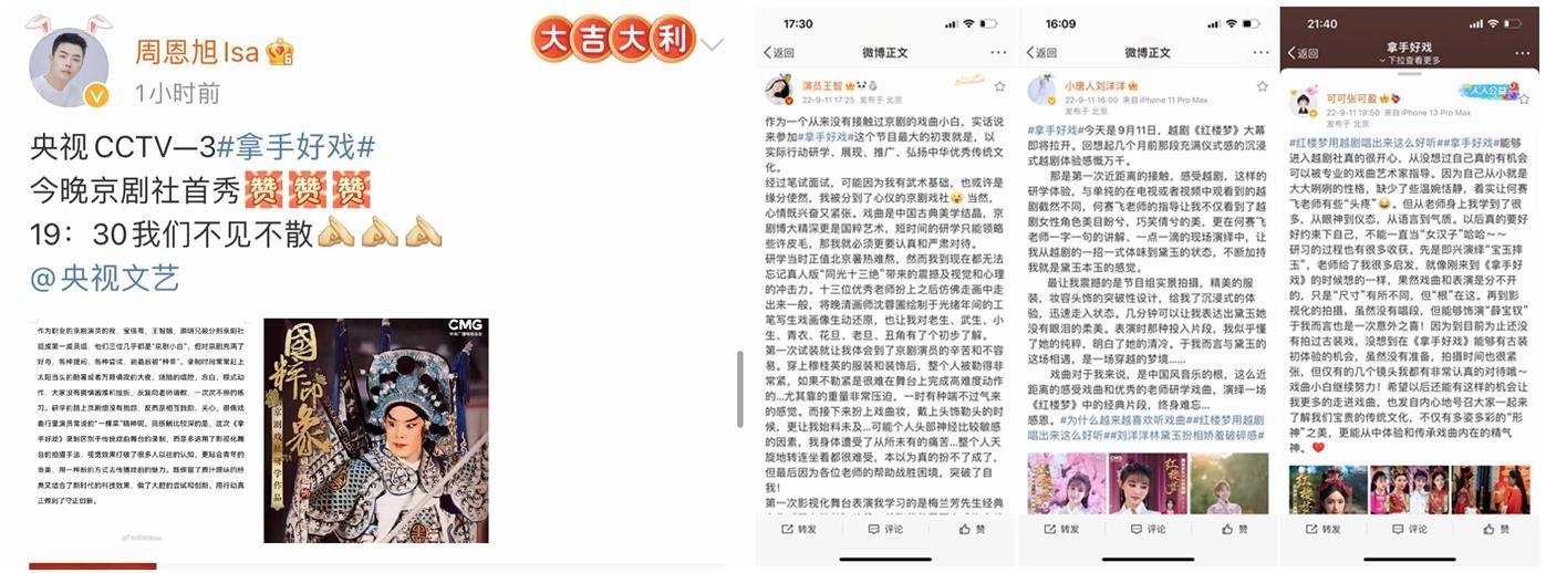 促成传统戏曲传承式发展,一直是《拿手好戏》的初衷。随着节目开播,这样真情实感的网友留言,就在各个新媒体平台涌现出来。
