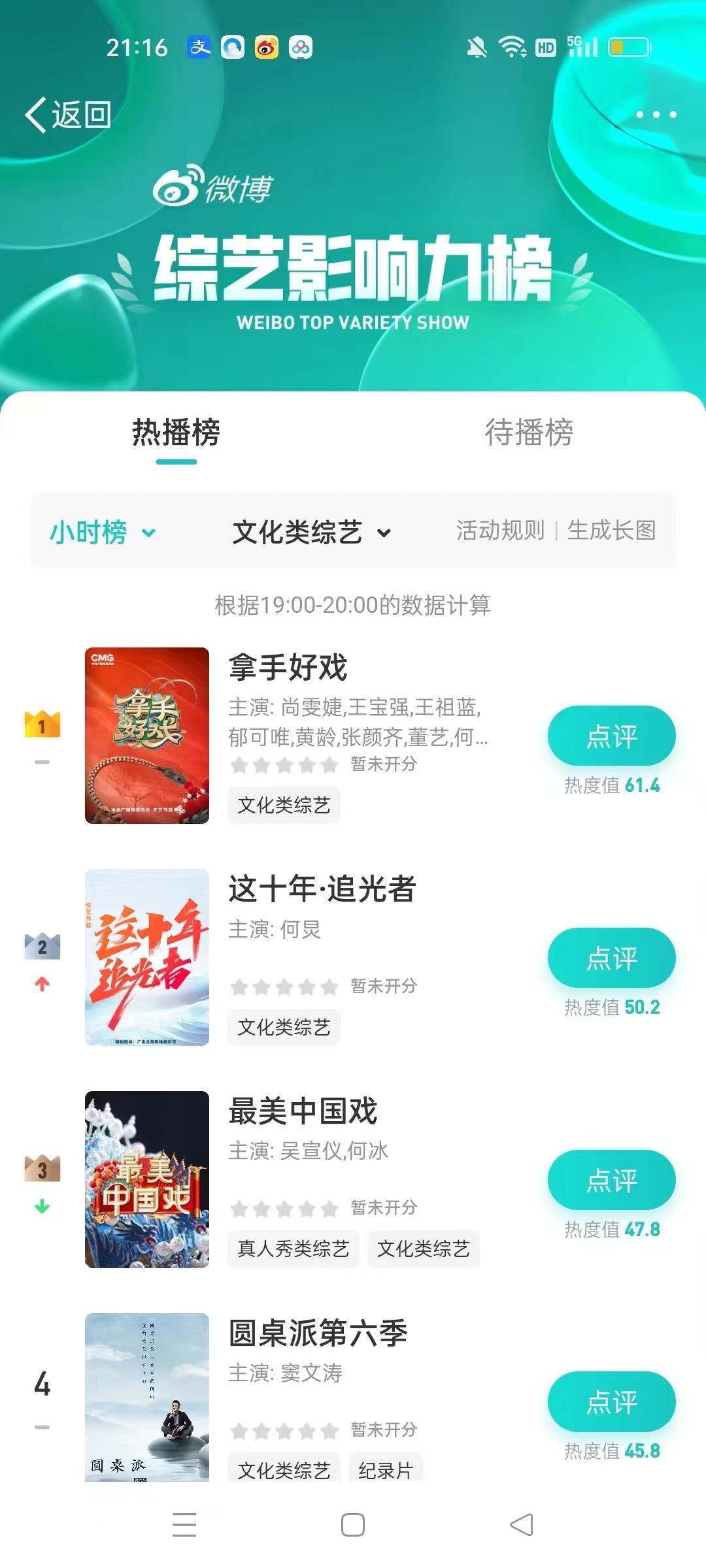 “从来没想到,竟然有一天我会和奶奶坐在一起津津有味地看戏曲节目!”说起戏曲,很多人脑海里会蹦出“传统”这样的字眼,但是随着央视综艺频道《拿手好戏》的热播,越来越多的年轻人,加入到观赏戏曲、学习戏曲的队伍中来。“戏曲真的太有魅力了”“原来戏曲还能这样年轻”的感悟,不时出现在节目的相关评论中来。《拿手好戏》以沉浸式戏曲研学的方式,建立了戏曲与年轻人的情感链接,在全网新媒体平台引发了广泛热议。截至目前,节目连续三周登顶微博文化类综艺榜TOP1,单期斩获全网热搜74个,累计热搜259个;单期全网曝光15.2亿,累计曝光达49.8亿;节目话题阅读量破11亿,全网视频播放总量破4亿。