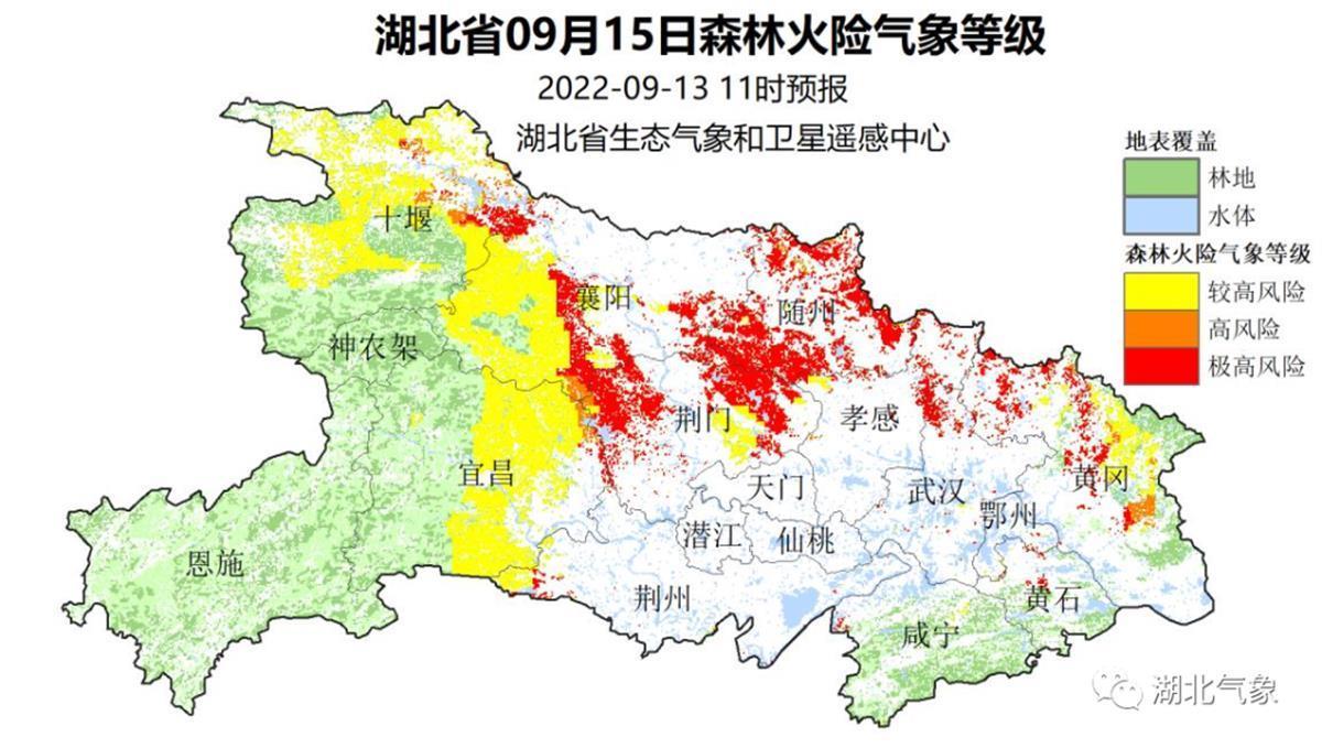 湖北省9月15日森林火险气象等级 (图源:湖北气象)