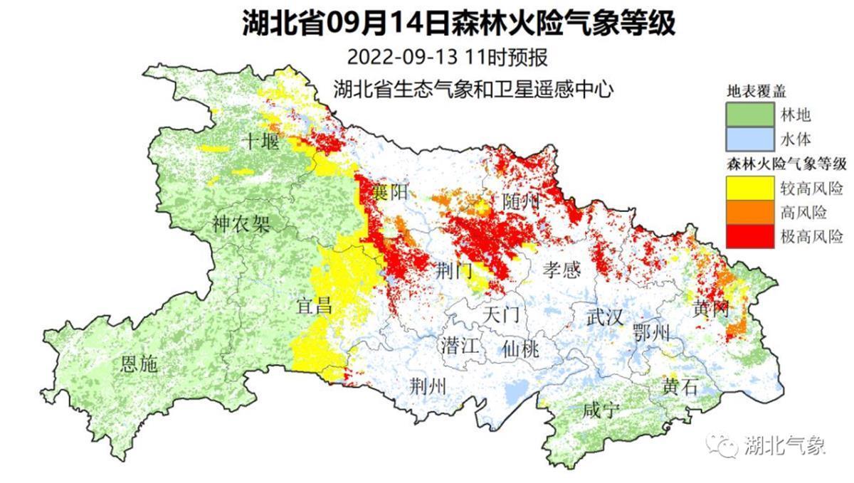 湖北省9月14日森林火险气象等级 (图源:湖北气象)