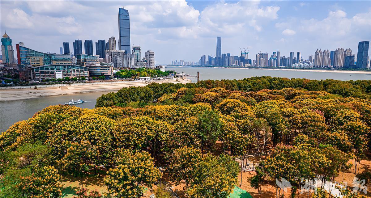 如今,南岸嘴滨江公园绿树成荫,进入秋季,这里成片的栾树花美不胜收,成为江城秋日一道靓丽的风景线。