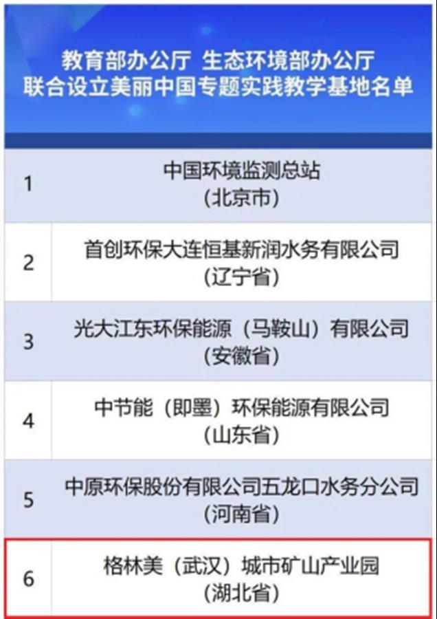 湖北日报讯(通讯员孙雅晴)9月15日获悉,教育部会同中央八部门联合公布首批国家级“大思政课”实践教学基地,湖北仅16家单位上榜,格林美(武汉)城市矿山产业园成功入选,并成为教育部和生态环境部联合设立的全国15家“美丽中国专题实践教学基地”中唯一的湖北单位。