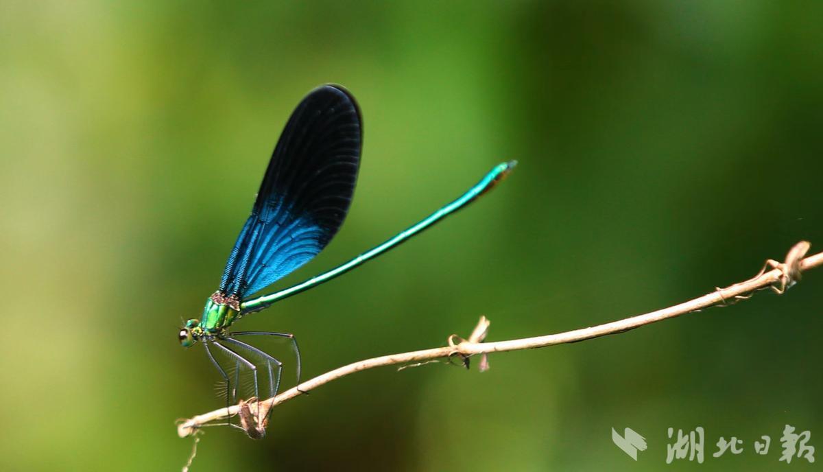 湖北日报客户端讯(鹤峰频道记者 向上 陈钰婷 通讯员 向冰舟)轻绡剪翅约秋霜,点水低飞恋野林。近日,在鹤峰容美镇张家村九峰桥的树林里,人们看到像蜻蜓的小东西——豆娘,在秋天的早晨轻盈地飞舞,在嫩绿的草叶上停歇,成为入秋一道靓丽的风景线。