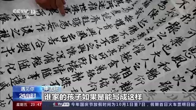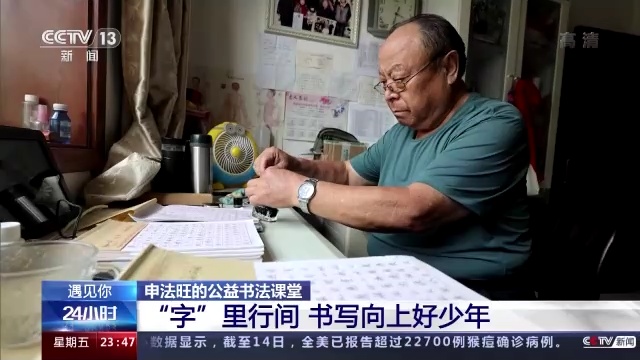 今年申法旺和同事们一起组织的这个书法班,一共有300多名孩子参加,根据进度和兴趣爱好,分成了硬笔书写和毛笔书法共7个班,由不同的老师辅导教授,一些升了班的孩子,还是习惯把自己写好的字再拿给申爷爷看一看。
