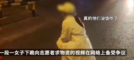 视频中显示,该女子在深夜的大街向志愿者要吃的,边下跪边哭,还表示“他们没饭吃了”,引发网友关注。