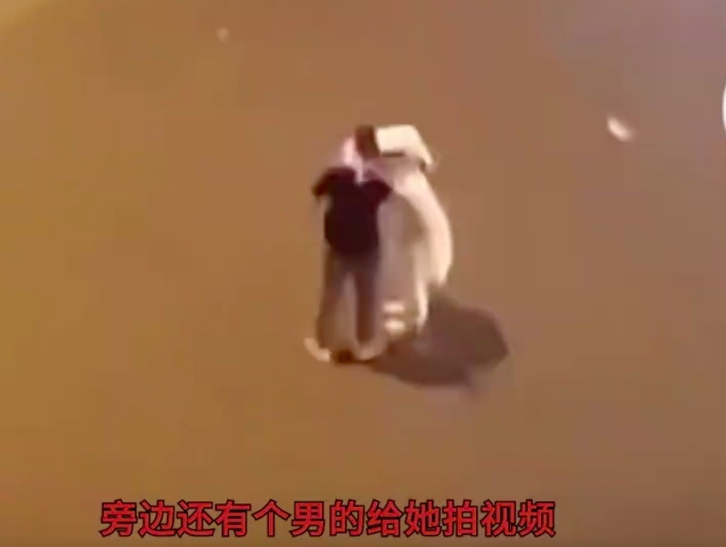 有目击者拍摄到该女子疑似摆拍作秀