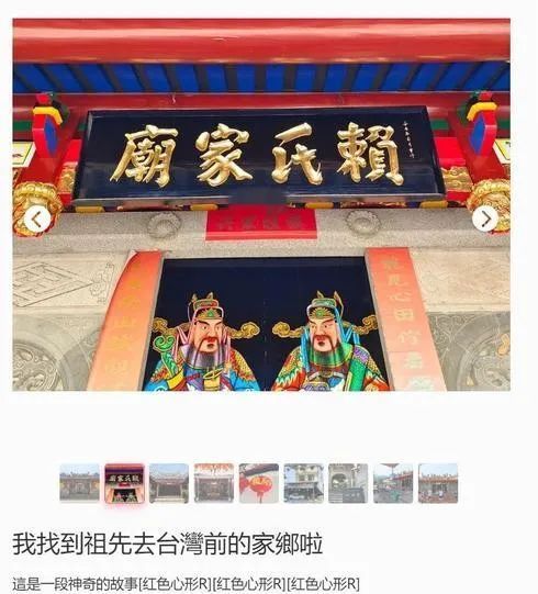 9月11日,赖赖在社交媒体发文告知网友“我找到祖先去台湾前的家乡了”,网友们再次给予了热烈回应——