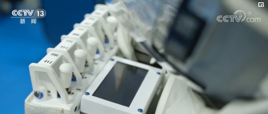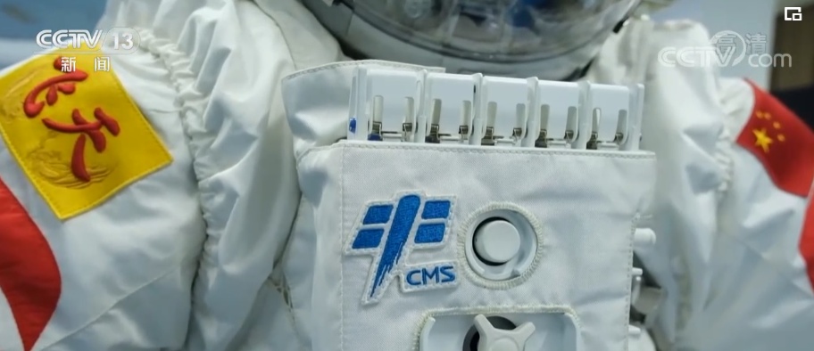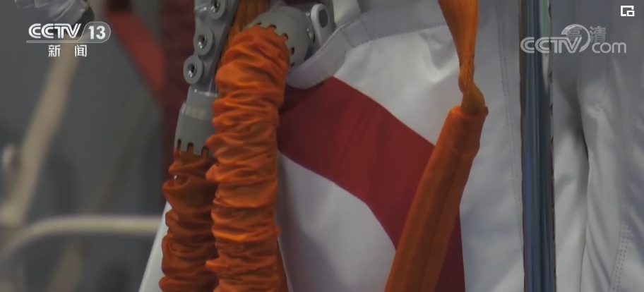 总台央视记者 刘洁:这就是航天员出舱使用的舱外航天服,我们看到了一个特别的设计:在服装胸前的一些设备上,文字标识是反的。之所以做这样的设计,是因为航天员通过面窗观察胸前的一些设备,是有视野盲区的。这个时候,航天员可以通过手套上的反光镜来观察,镜像之后航天员看到的字就是正的,方便航天员的识别和操作。