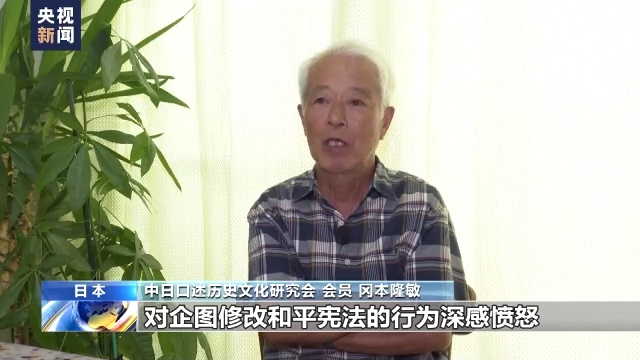 中日口述历史文化研究会会员 冈本隆敏:我坚决拥护放弃发动战争和反对扩军的和平宪法,对企图修改和平宪法的行为深感愤怒。