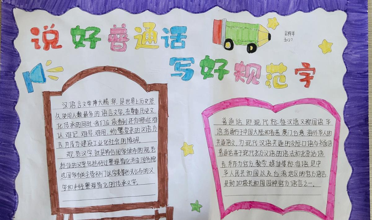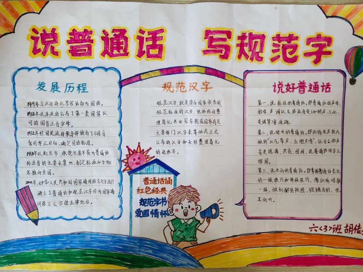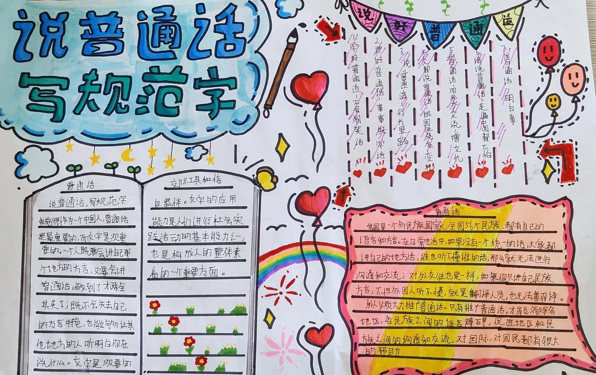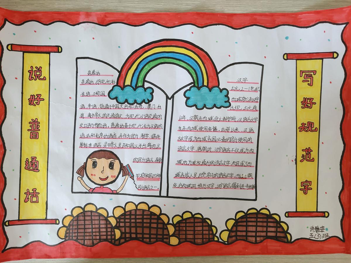 在班主任老师指导下,学生们通过搜集、整理资料、巧妙设计、精心编排,绘制出一张张图文并茂、内容丰富的推普周手抄报。