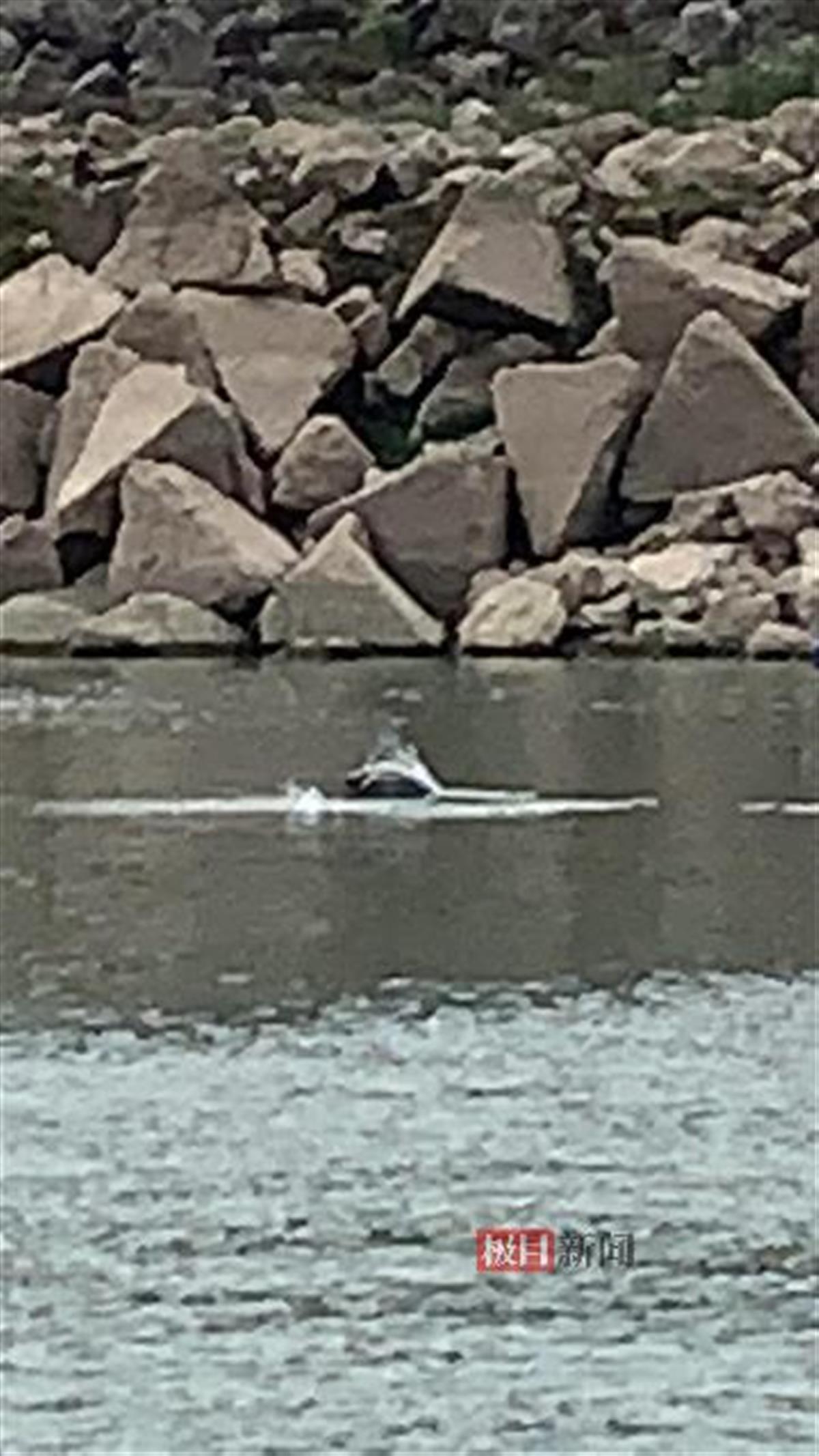 早上9时,极目新闻记者跟随宜昌至城陵矶段考察队在宜都登船,开始进行第二天的江豚科学考察。中午12时 ,中国渔政020科考船行驶至宜昌葛洲坝附近江面,12时50分左右,观察员在船体 左侧发现了江豚的身影。数条江豚争先露出水面,记者看到,在这群江豚里还有着小江豚的身影。