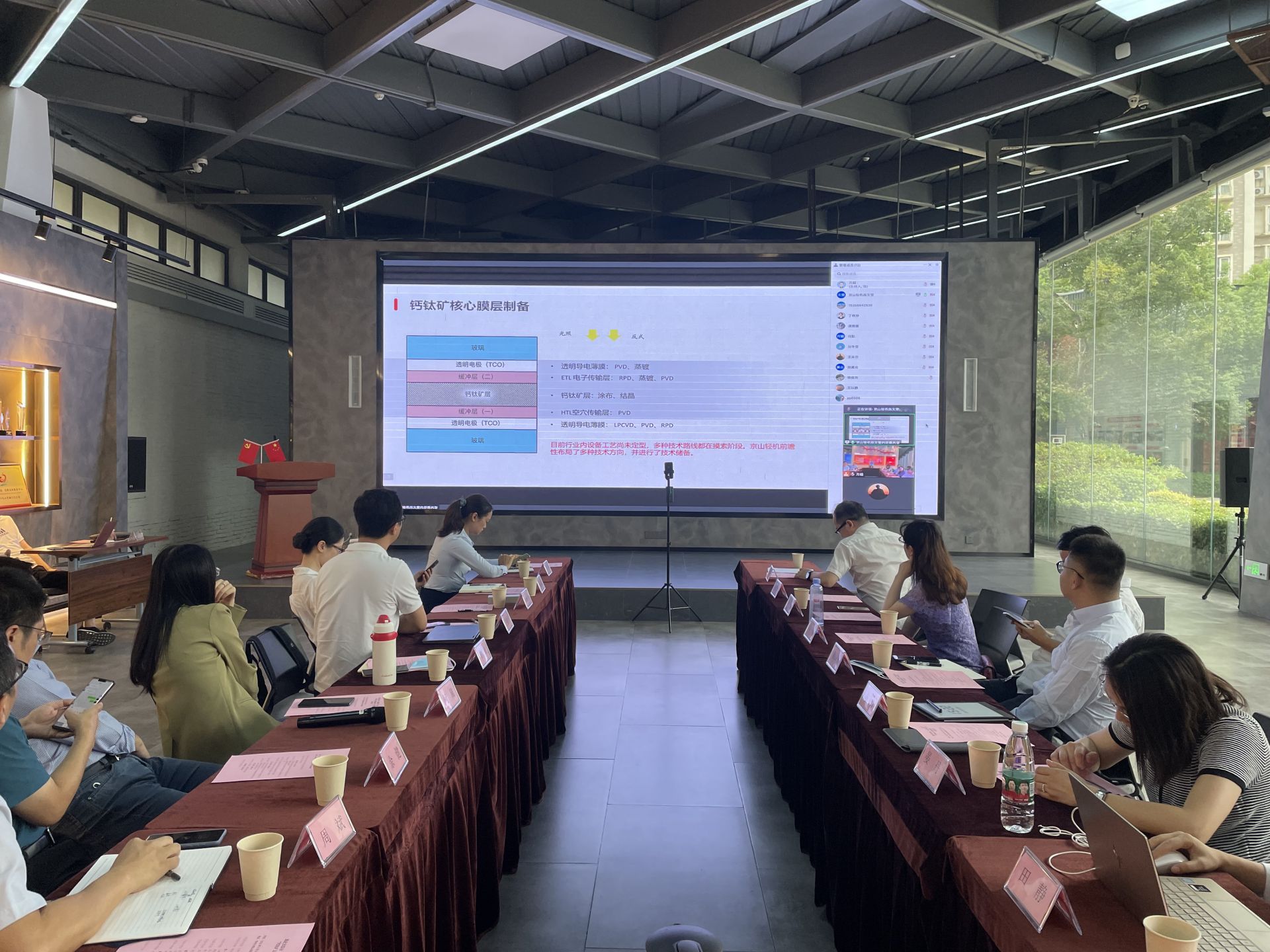 京山轻机、杭州纤纳光电、农尚环境等多家产业龙头企业代表,英诺天使、长江创投、工商银行、兴业银行等专业金融投资机构和三峡集团技术研究院技术专家,围绕钙钛矿材料领域科技发展前沿和创新应用开展深入交流和研讨,探索建立“传帮带”的“硬科技”朋友圈,进一步疏通钙钛矿产业的实验室技术研发和产业化双向链接快车道,使创新成果更快转化为现实生产力。