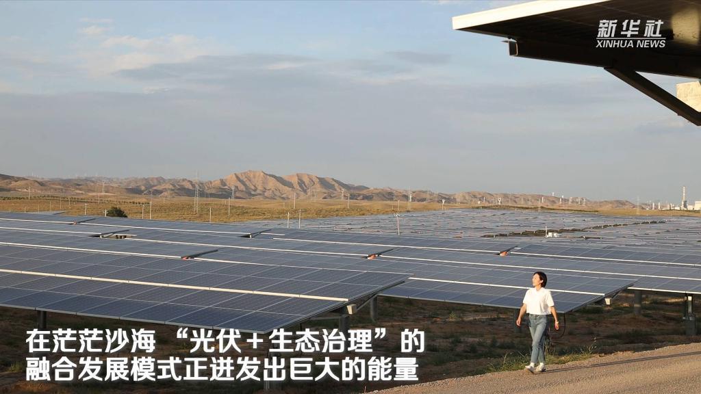 光伏板下孕育着越来越多的生机,一场治理沙利用沙的蓝海正在这里开启。
