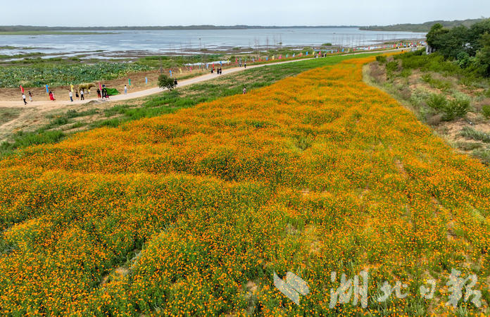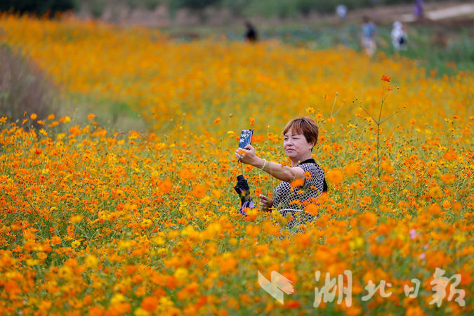湖北日报客户端讯(咸安频道记者 吴涛 聂国力 舒志强 通讯员 张冲)9月20日,咸安区向阳湖湿地花海迎来开园,600亩花海里各种鲜花竞相怒放,姹紫嫣红的花朵交织成彩色花带,迎风摇曳,轻盈灵动,飘荡出阵阵花香。不少市民和游客纷纷慕名前来赏花、游玩,游人与美景相融,构成了一幅生动而美丽的画卷。