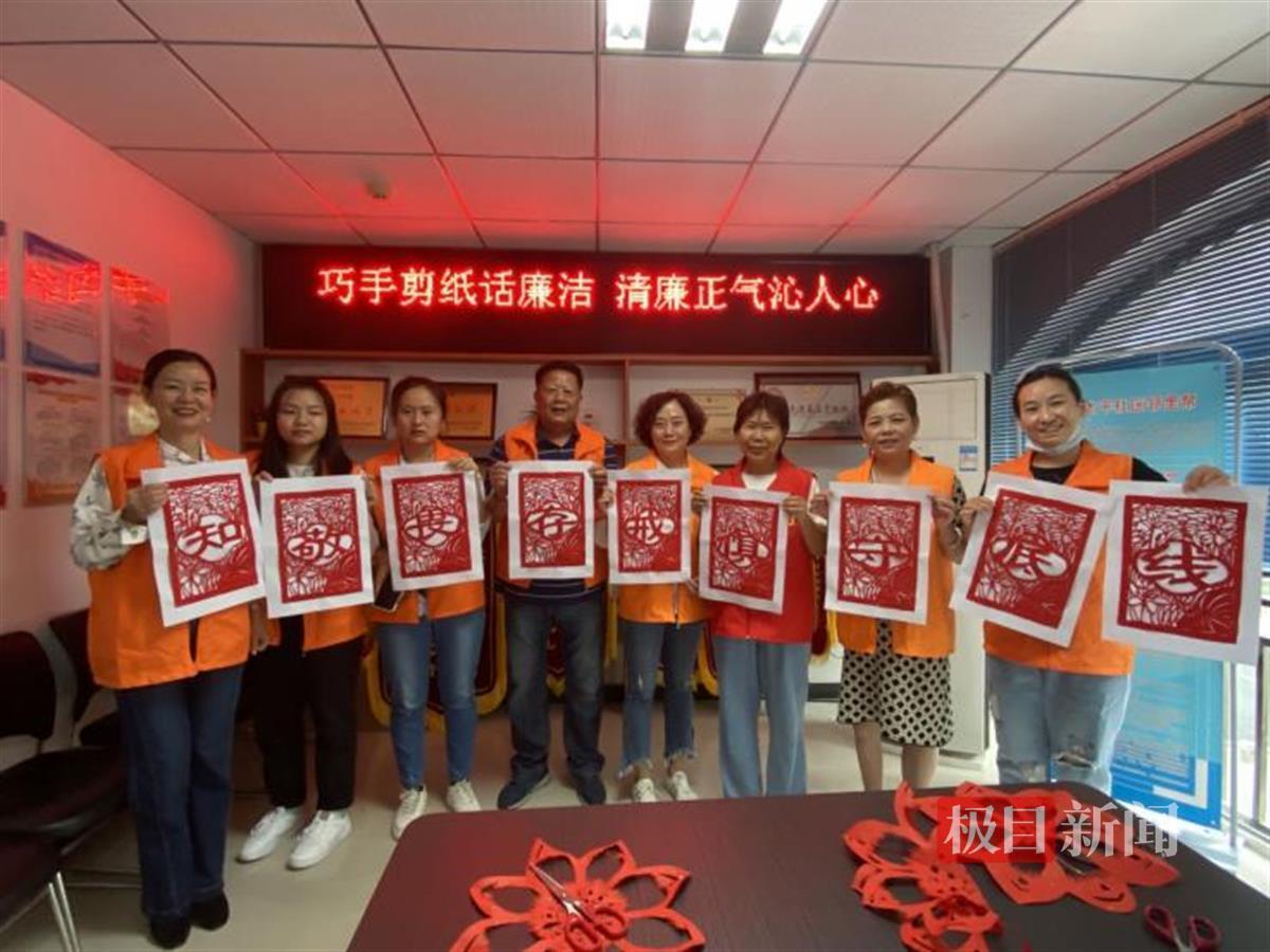 21日上午,武汉市江岸区四唯街道太平社区邀请“邻里帮”党员志愿者队伍里的巧手剪纸能人曹老师,以“廉洁”为主题,用中国传统文化——剪纸带领太平社区党员干部感受“正气之风”。