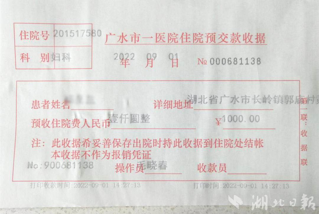 湖北日报客户端讯(广水频道通讯员广融)“赵医生,实在是太感谢你了……”在广水一医院妇科病房,杨女士接过赵艳清医生手上的1000元住院缴费单,又是感谢又是不好意思。这笔钱是杨女士的家属硬塞给赵医生的一份“心意”,却没想到这笔钱以这种方式又回到了杨女士的手中。