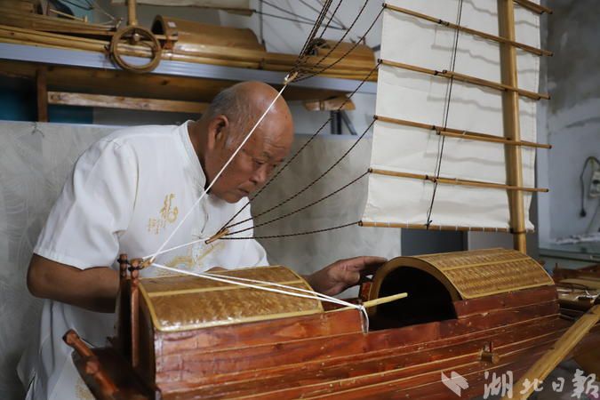 杜远慈是巴东县官渡口镇西瀼口社区的一位普通农民,也是一位地地道道的峡江“守艺人”,73岁高龄的他现今依然耳聪目明,技艺精湛,他的手工雕刻作品也被巴东县博物馆乃至央视收藏。“许多结婚、搬家的人经常来找我订做。”谈到自己手工雕刻的帆船模型,老人满是自豪。