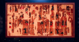 通过浓墨重彩的工笔和对汉代五色的运用