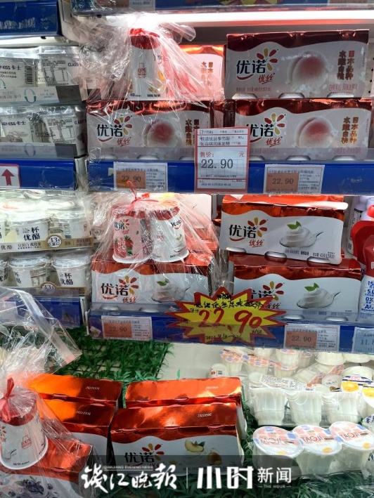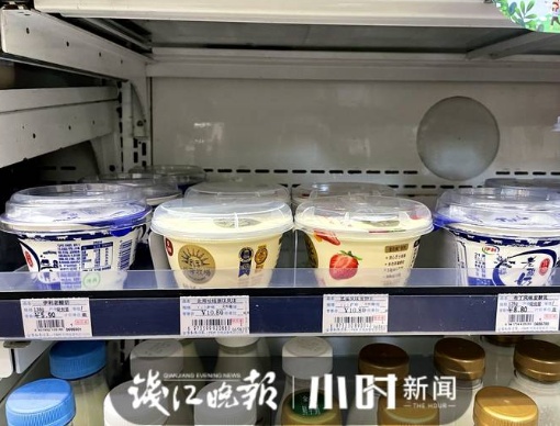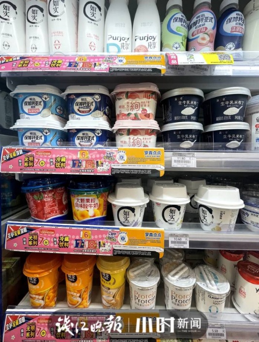 相比便利店,大超市里的酸奶价格明显亲民一些。同款明治酸奶,便利店一杯9.9元,超市正在搞促销活动6.9元能拿下。