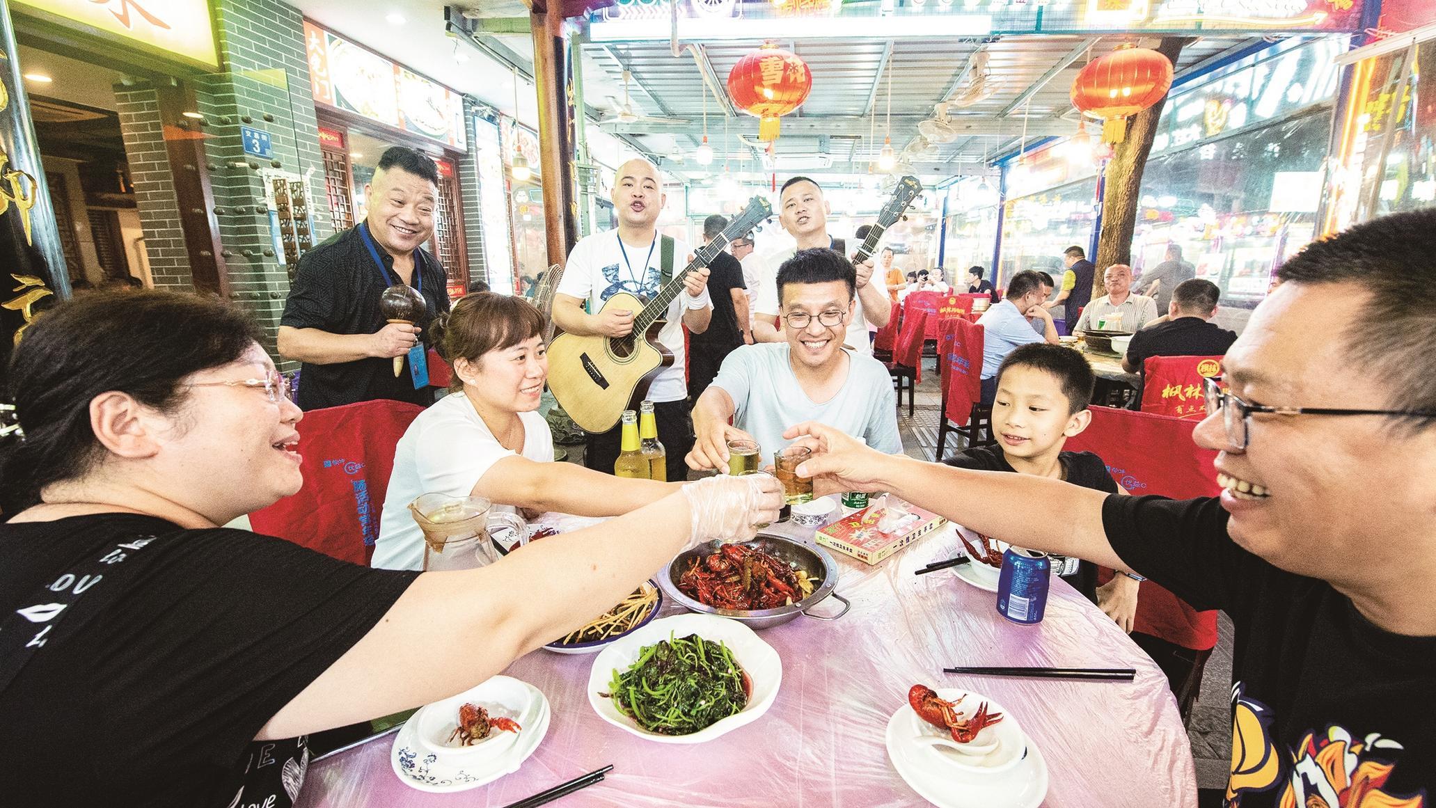 餐桌上诱人的小龙虾、夜市里熙攘的人群、小吃摊位前爽朗的笑声、啤酒杯里涌起的白色泡沫、“微信到账”“支付宝到账”的提示音响个不停……今夏,餐饮消费市场逐步回暖。