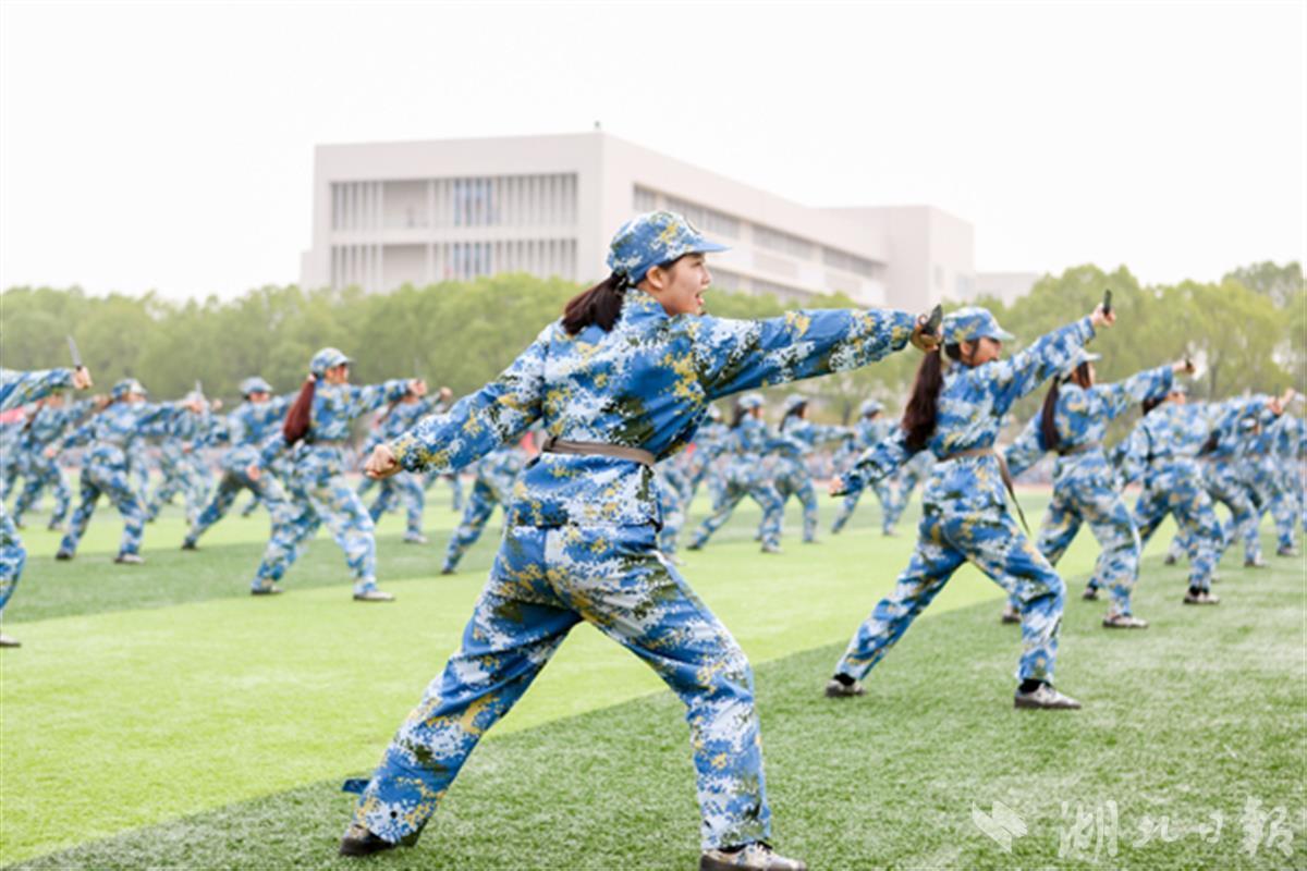 “湖北经济学院2022级军训团的同志们,你们准备好了吗?”“准备着!时刻准备着!时刻准备着!”2022级新生步伐矫健,队列整齐划一。在特色方阵表演环节,端枪、卧倒等系列动作一气呵成。一突一刺、一防一击,军体拳方阵、匕首操方阵轮番上阵,展示了新生们的昂扬风采。