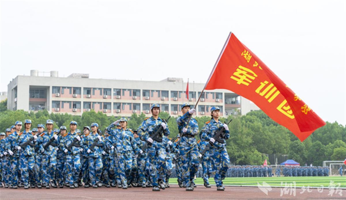 湖北日报讯(记者田佩雯、通讯员陶慧)9月23日,湖北经济学院举行2022级新生军训成果展示。鲜艳的五星红旗迎风招展,激昂的国歌响彻校园,身着蓝色迷彩服的新生斗志昂扬,挺拔的军姿、整齐的队列告白母校、告白祖国。