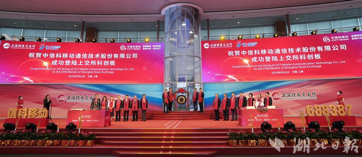 湖北日报讯(记者张真真、通讯员康鹏)9月26日,位于光谷的中信科移动通信技术股份有限公司在上海证券交易所敲钟上市,正式登陆科创板(股票简称:信科移动,股票代码:688387)。