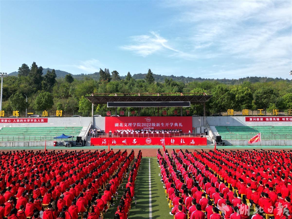 湖北日报讯(记者田悦 通讯员卜润慧)以“湖文人”的新身份扬帆起航,逐梦新征程。9月26日,湖北文理学院4697名本科生硕士研究生参加2022级学生开学典礼,校长张彦铎为新生代表周明泰、陈好同学佩戴校徽, 16名过生日的同学获赠生日礼物。