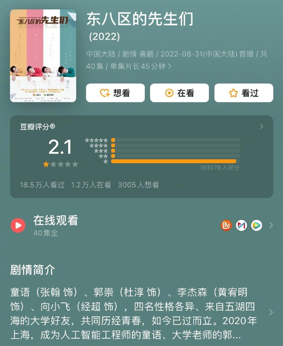 《东八区的先生们》豆瓣评分2.1分,为史上最低 (来源:网络截图)