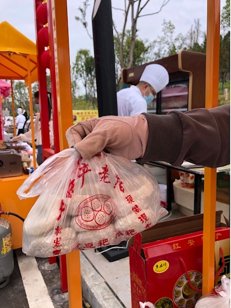 袋装的绿豆粑价格亲民,展销会上受热捧 摄影:楚天都市报极目新闻记者董淑健