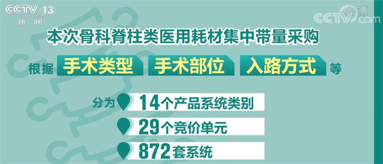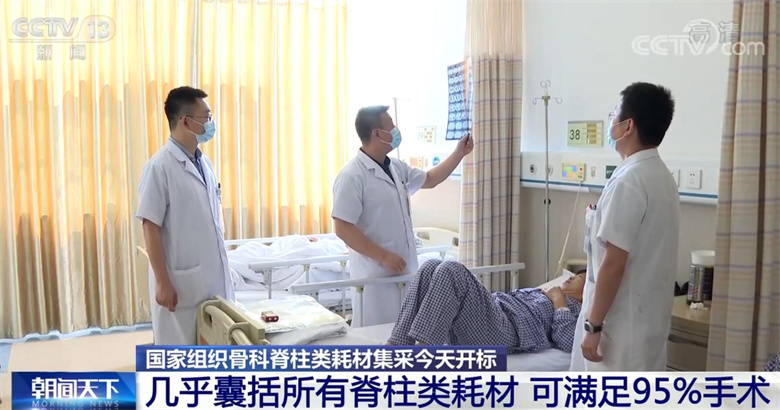 国家医疗保障局价格招采司招采处处长 董朝晖:我们这次集采几乎囊括了所有的脊柱类耗材,包括各种各样的螺钉、金属板、金属棒以及骨水泥、人工椎体等等,这样能够基本上满足临床现在开展的95%以上的(脊柱)手术的需要。