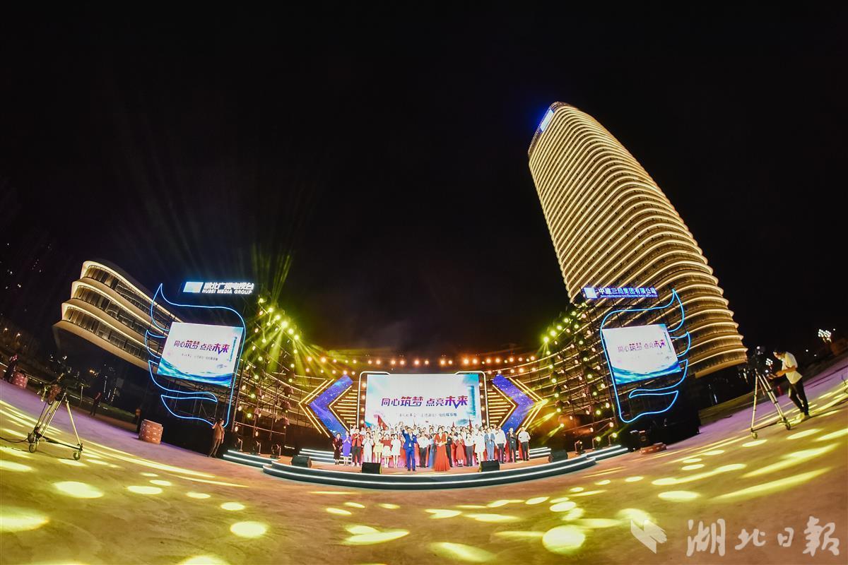湖北日报讯(记者农新瑜、通讯员周燕妮)“哇,太炫酷了!又一座文化地标!”9月26日晚,武汉东湖高新区内,到达测试节点的湖北广电传媒基地开启泛光照明测试,在数百名建设者的见证下,“高山行云流水”造型的传媒基地塔楼裙楼均被点亮,其中高达203.5米的湖北广电传媒大厦尤其引人注目。现场华灯璀璨、光幕变幻,为即将到来的国庆节增添了浓浓喜庆氛围。