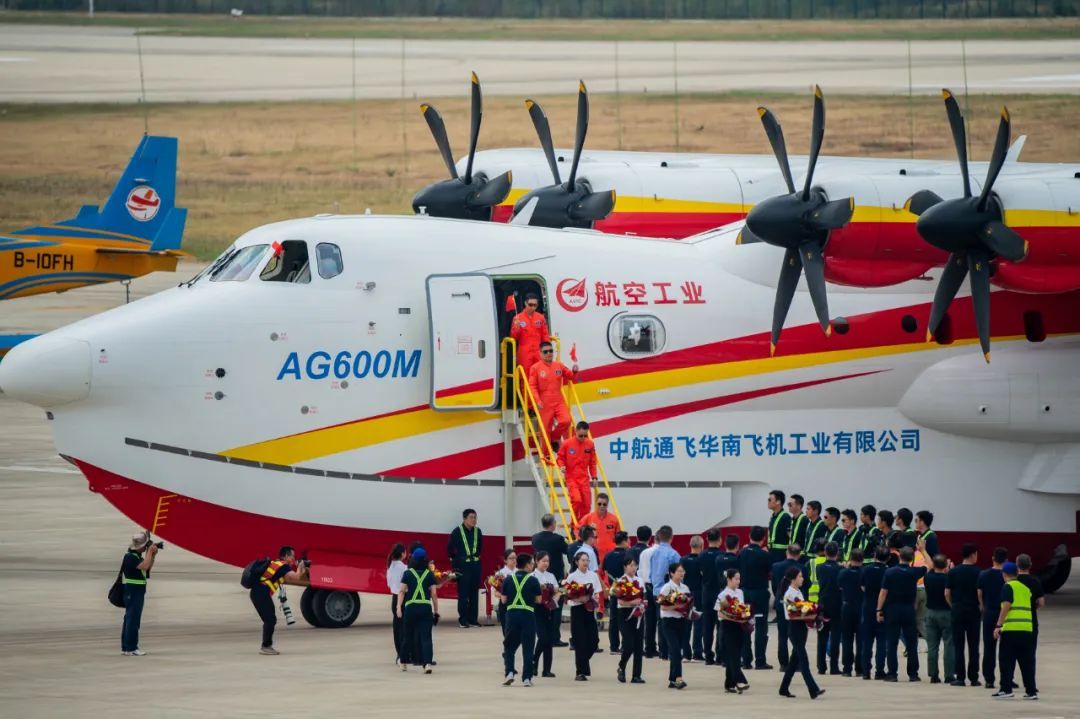 AG600飞机是为满足我国应急救援体系和国家自然灾害防治体系建设需要研制的重大航空装备,是我国首次按照民用适航标准研制的大型特种飞机。AG600M是AG600的优化机型,最大起飞重量60吨,最大载水量12吨,最小平飞速度220千米每小时,航程4500千米,具备优越的低空、低速、短距起降性能。
