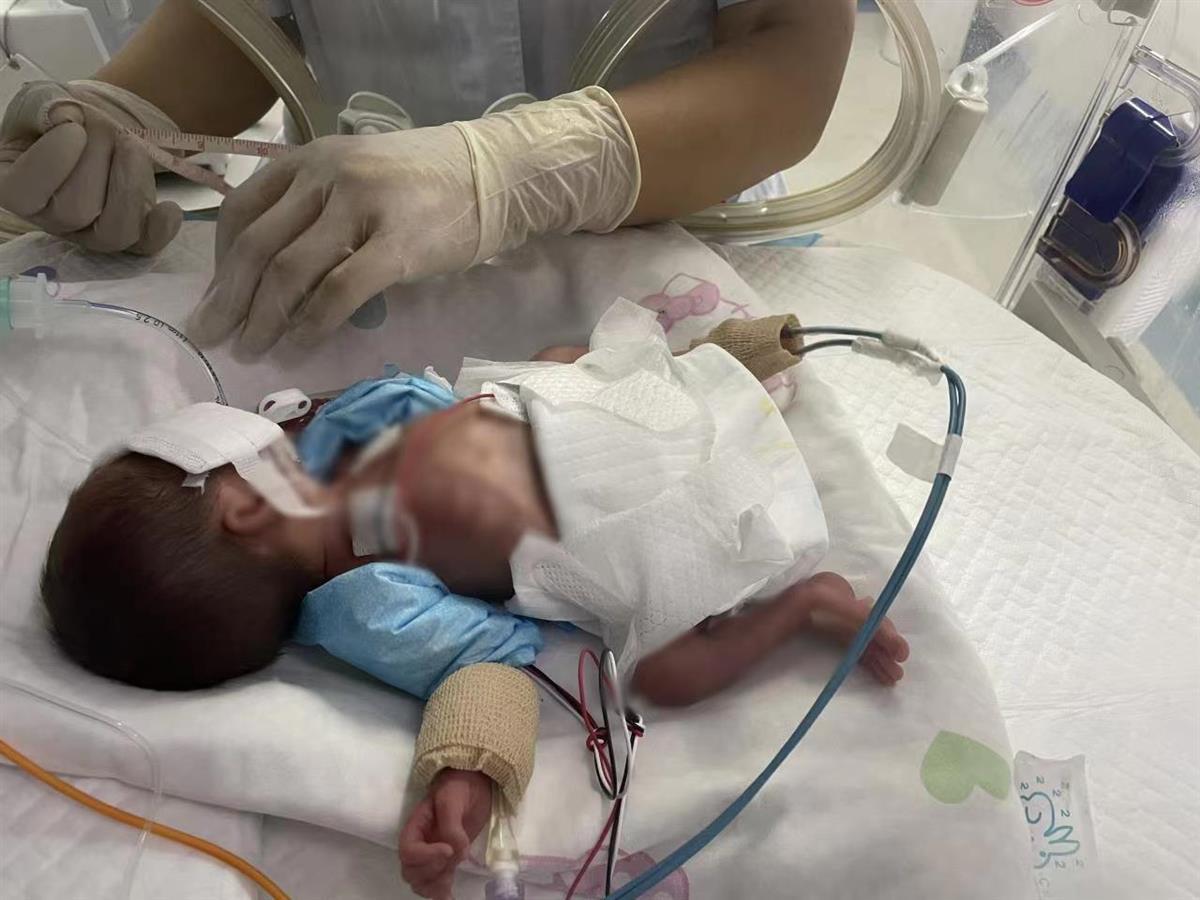 经过20多分钟的紧急处理及对症支持治疗,双胎的生命体征暂时趋向平稳。但这只是过了抢救的第一关,兄弟俩的生命抗争之旅才刚刚开启。由于胎龄小,体重轻,全身各脏器发育不成熟,需要闯过呼吸关、感染关、体温关、喂养关等重重关卡。方成志主任和尚彦彦护士长团队根据丰富的救治超早产儿经验,分别组织医生和护理团队,制定了个性化的24小时医护一体诊疗和护理措施。