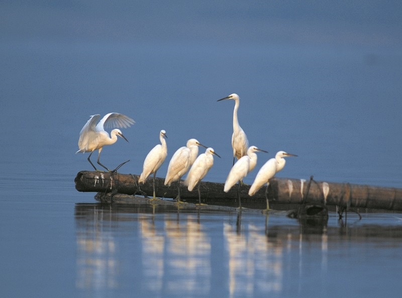 随着剑河流域太极湖畔良好生态系统的形成,成群的白鹭、野鸭等野生鸟类在湿地泡与人工岛上筑巢安家。