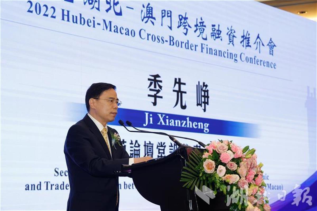 9月27日,为促进深化湖北与澳门的交流合作,推动两地高层互访和鄂澳合作机制建立,省政府在澳门举办“双向赋能 聚力共赢”2022湖北-澳门跨境融资推介会。省政府相关负责人、澳门金融管理局行政管理委员会主席陈守信、中葡论坛常设秘书处秘书长季先峥出席并致辞。