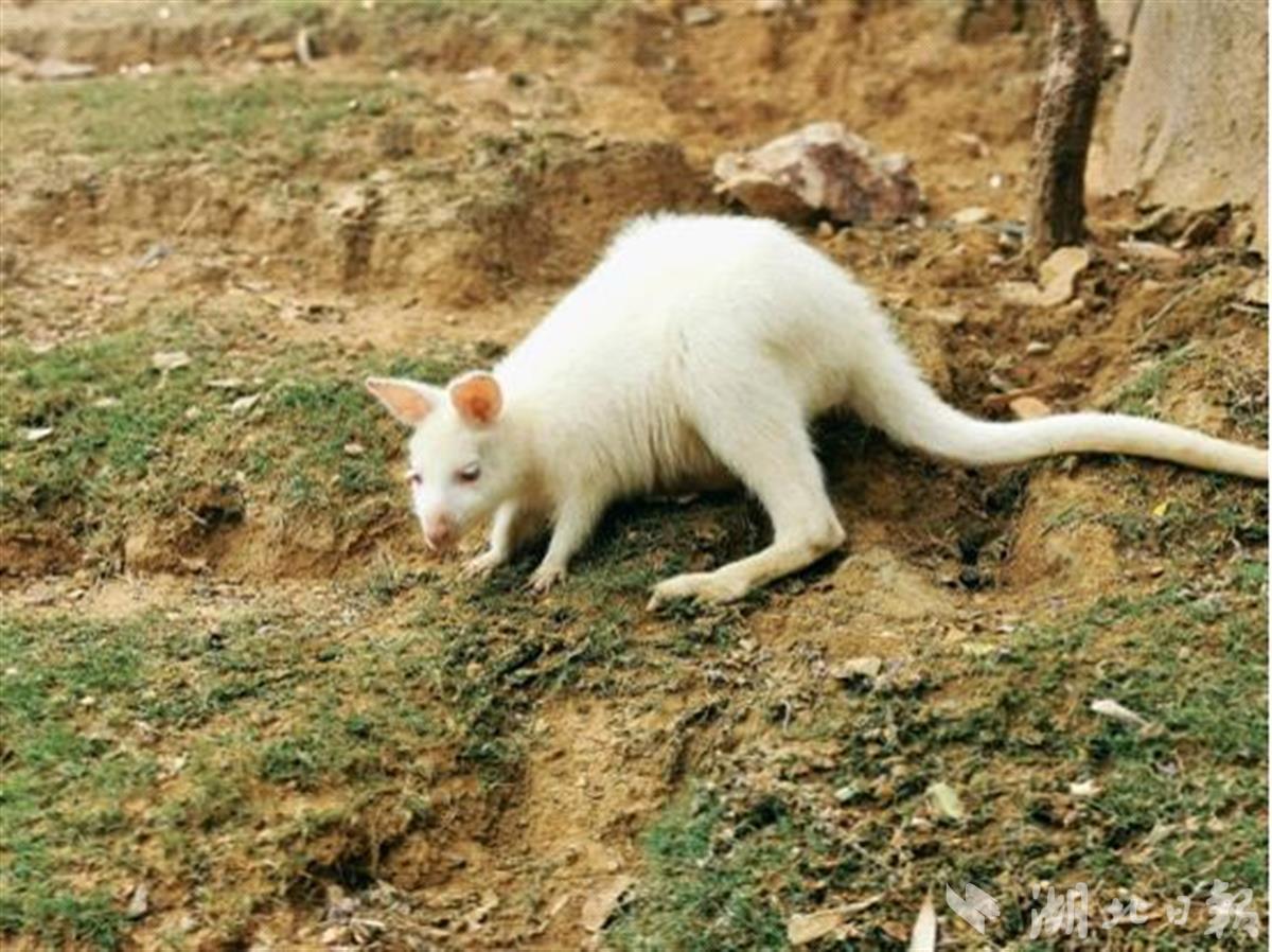 武汉野生动物王国董事长朱彦飞介绍,白袋鼠原产澳大利亚,是赤颈袋鼠群体中基因突变的个别现象,是全球濒危物种,全世界仅有1000余只。此次,武汉野生动物王国的小白袋鼠,父母均为普通灰色赤颈袋鼠。