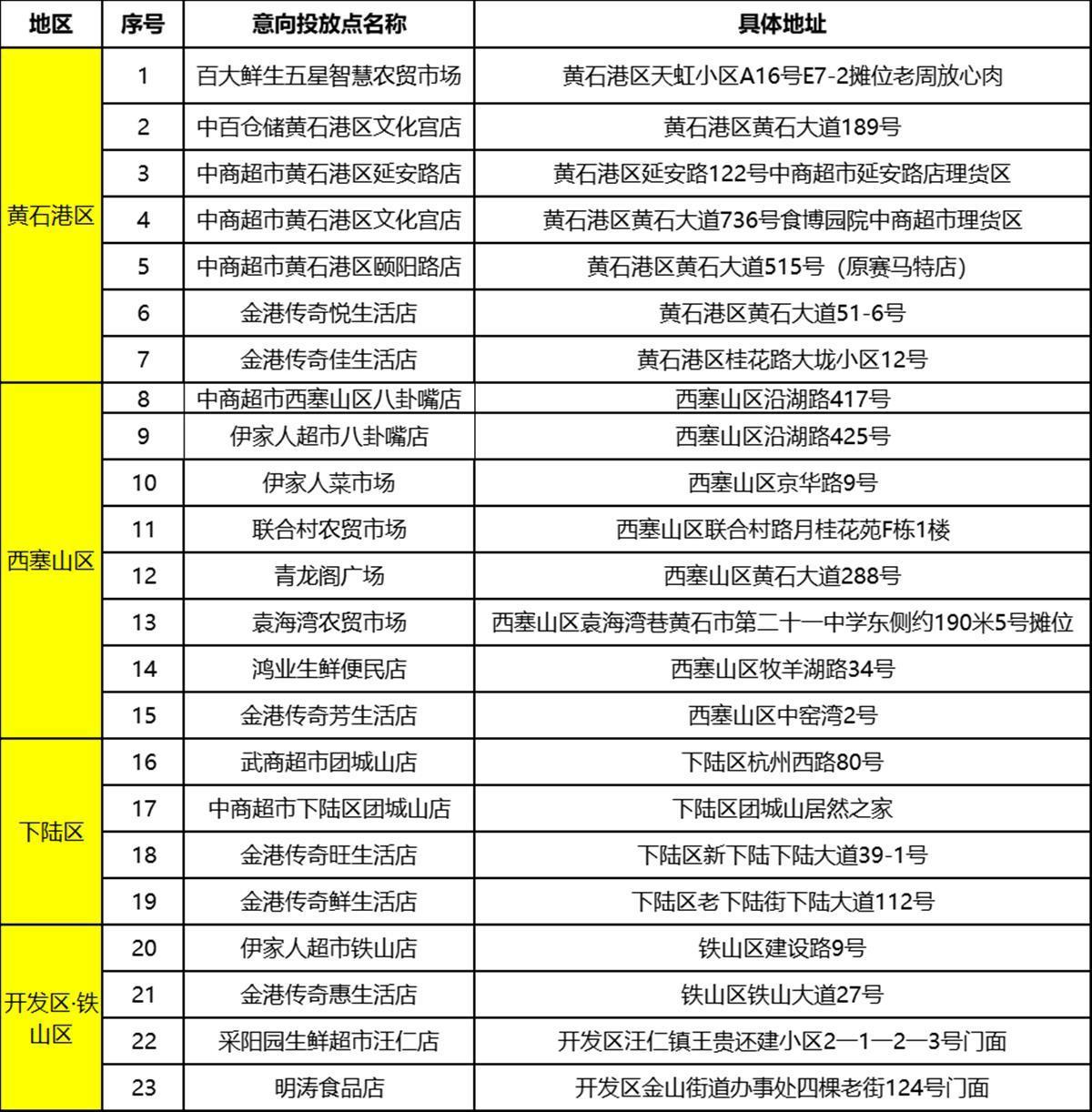 黄石市城区政府储备肉投放点