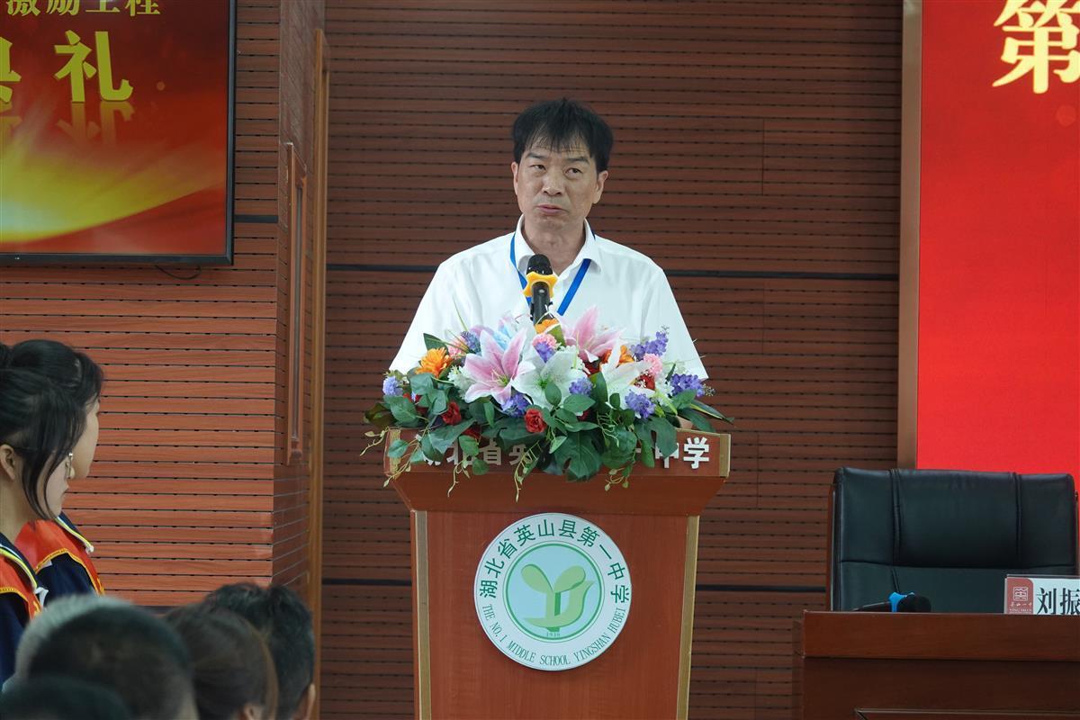 英山一中党委书记、校长刘振武在讲话中说,希望老师们不忘初心砥砺前行,不负荣誉再创辉煌;希望同学们努力学习,发奋图强,将爱的火炬在生命间传递。
