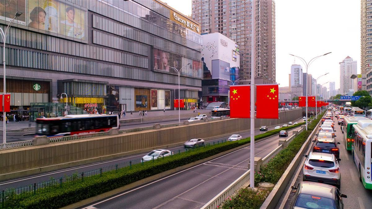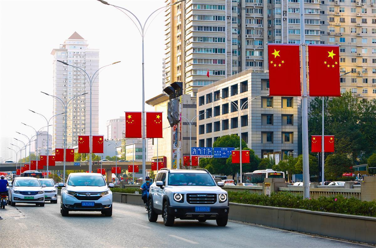 洪山区大街小巷五星红旗迎风招展