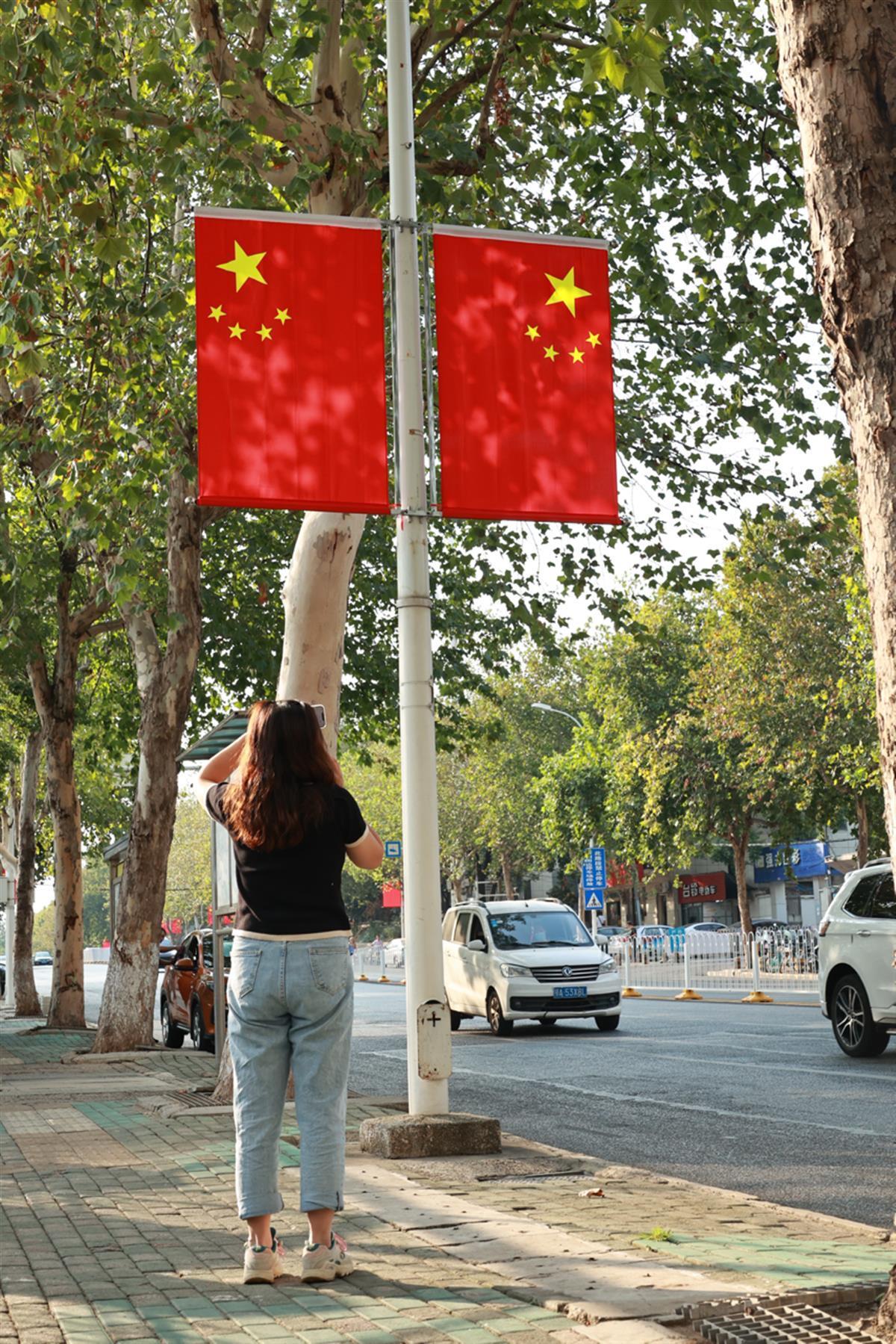 “十一”国庆节临近,武汉市洪山区大街小巷悬挂上了鲜艳的五星红旗。