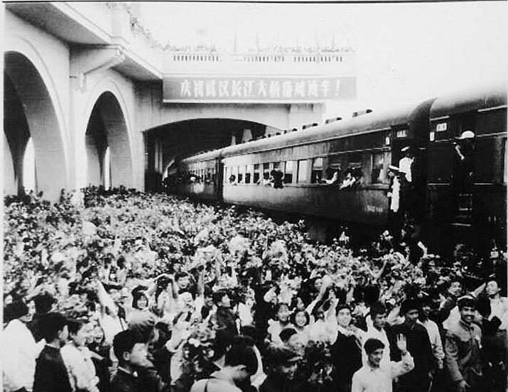 武汉长江大桥经历2年1个月建设,于1957年9月底工程竣工,“一桥飞架南北,天堑变通途”。10月15日的通车典礼,近万名武汉市民涌上大桥,将国庆欢乐推向高潮。