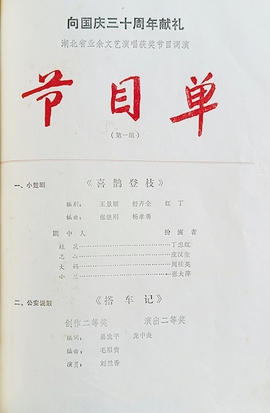 1979年国庆,庆祝新中国成立三十周年献礼全省业余文艺调演节目单。