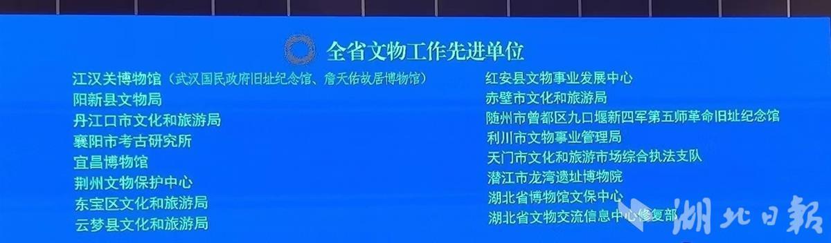 会议指出,党的十八大以来,全省各级文物部门以习近平新时代中国特色社会主义思想为指导,全面贯彻习近平总书记关于文物工作重要指示批示精神和党中央、国务院决策部署,以及省委、省政府工作要求,积极行动,保护了祖国珍贵文化遗产,弘扬了荆楚文化,为建设文化强省、文化强国作出了贡献,也涌现出一批热爱文物事业、作风优良、甘于奉献、业绩突出的先进单位和先进个人。为鼓励先进,树立典型,经研究,决定对全省文物系统涌现出的先进单位(16个)、先进个人(32名)予以通报表扬。