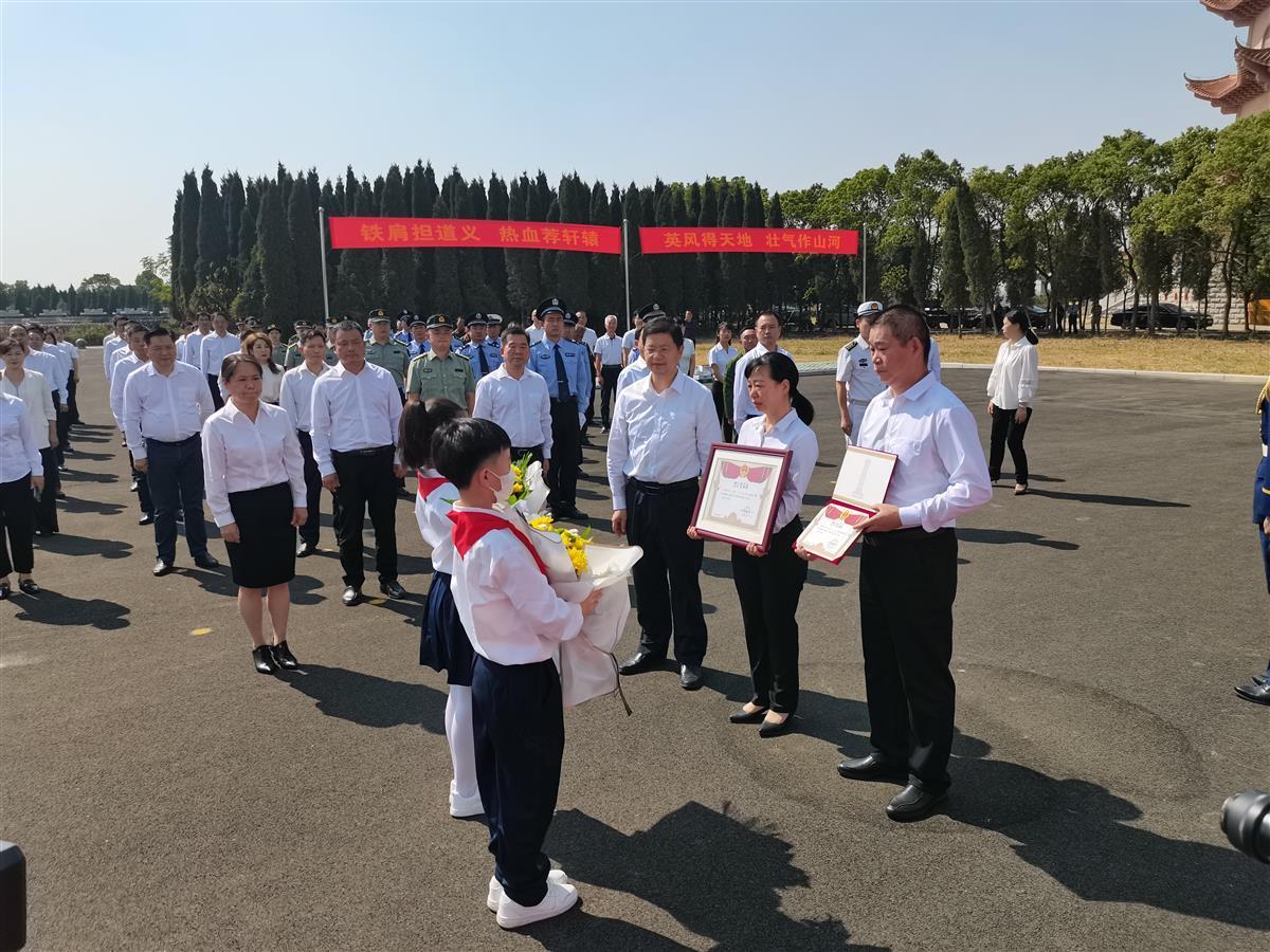 忠魂不灭、英气长存。9月30日上午,湖北云梦县在县烈士陵园隆重举行烈士公祭活动,在现场一片庄严肃穆的气氛中,云梦县委书记高文峰同志向关腾飞烈士遗属代表颁授《烈士光荣证》。