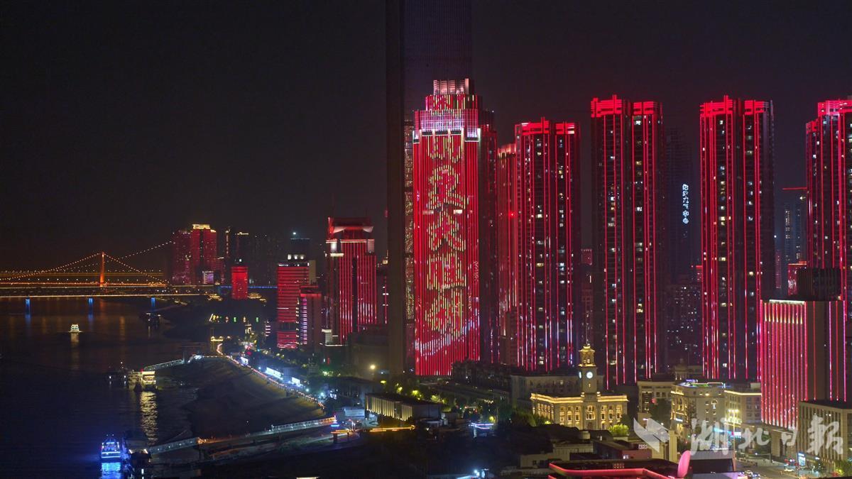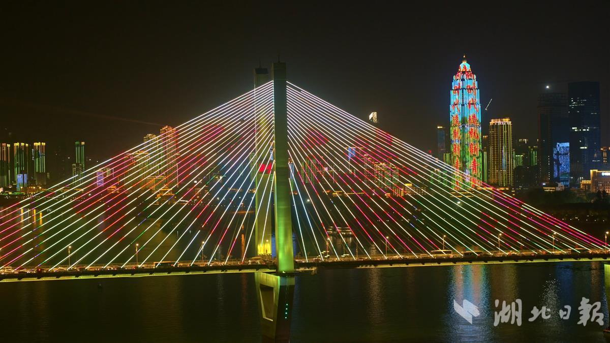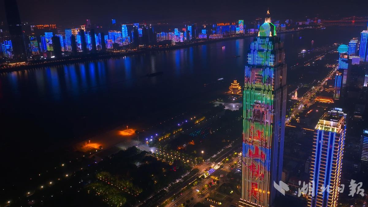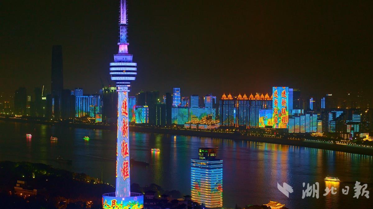 当晚,以喜庆红为主基调的灯光秀点亮长江之滨。伴随着光影变幻,长江灯光秀依托武汉“山、水、江、桥”的特色,联动长江大桥至长江二桥之间两岸楼宇、桥梁、黄鹤楼、龟山电视塔及长江游船等亮化景观,生动展现中国新时代的变革性实践、突破性进展、标志性成果,充分反映中国人民踔厉奋发、笃行不怠的精神风貌,如画美景绵延长江主轴25公里。
