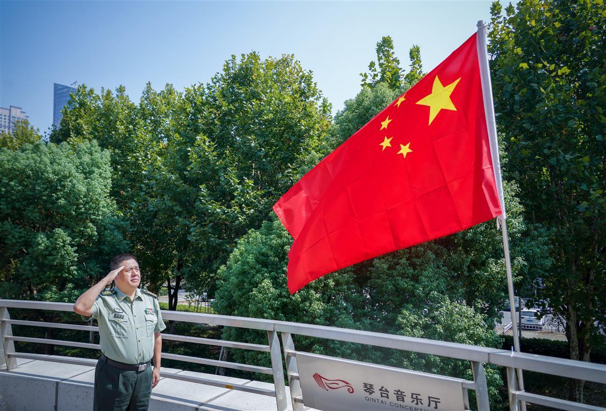 10月1日一早,迈着坚定的步伐,61岁的马国旗来到武汉琴台大剧院音乐厅广场,此时鲜艳的五星红旗在路旁迎风招展,马国旗面向国旗肃立,庄严举起右手,向国旗致以崇高敬礼。