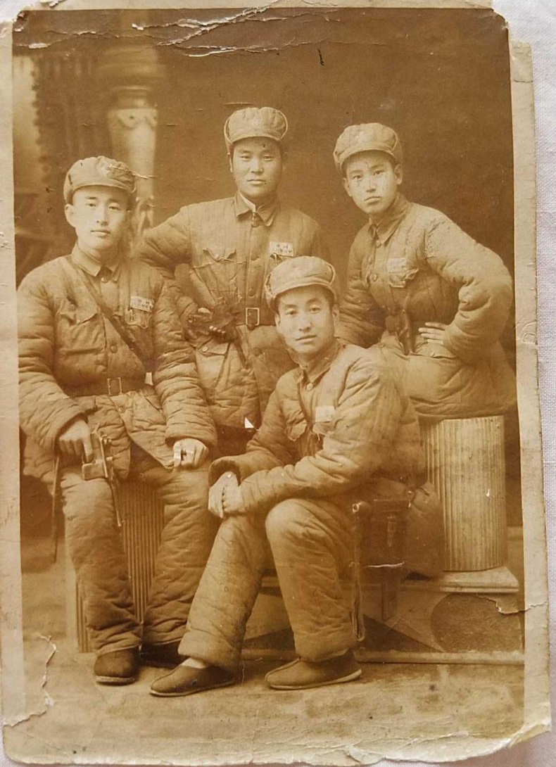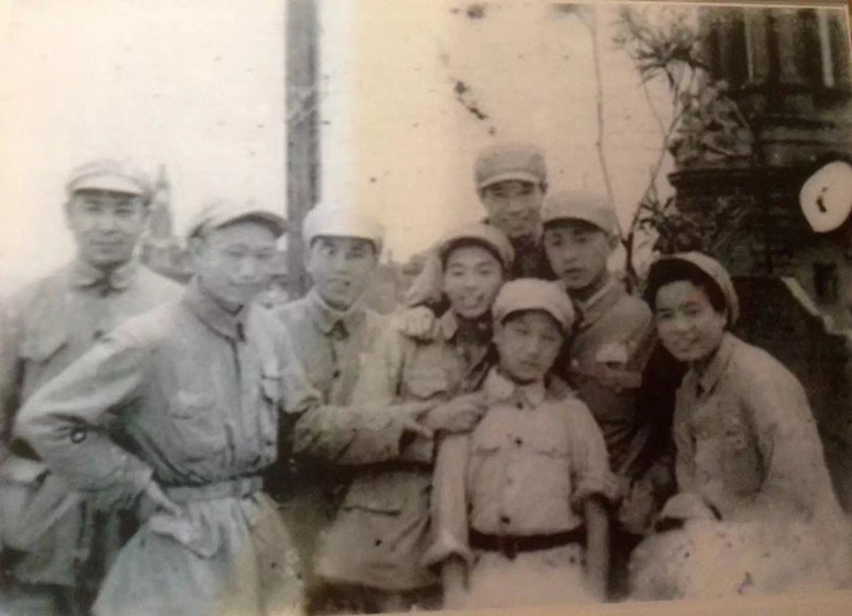 十岁的江峰跟随他的父亲(左一)参加了新四军