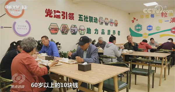 张云秀做完理疗后已经快中午了,她来到了养老服务中心开设的食堂吃午饭。这个食堂也是社区的老年人们最常来的地方。